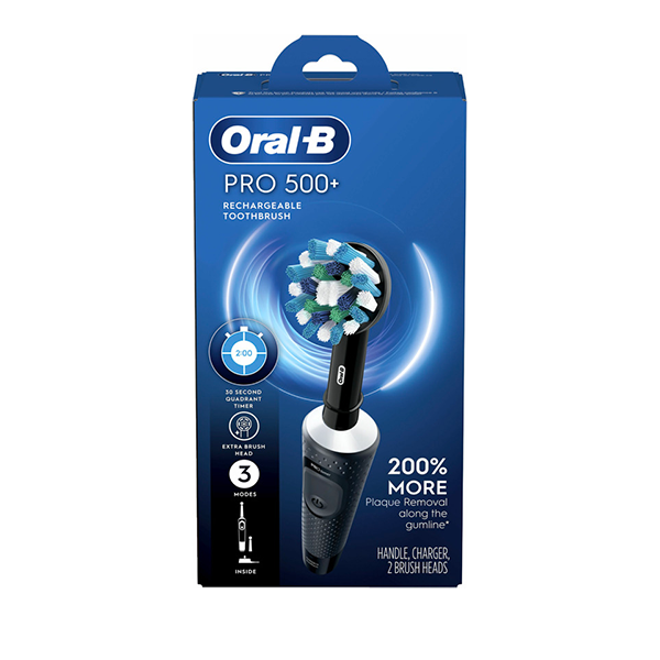 L'Oral-B Pro 500+ est une brosse à dents électrique rechargeable qui utilise une action 2D (oscille et tourne) pour éliminer plus de plaque qu'une brosse manuelle, offrant des modes de nettoyage comme le Quotidien et le Sensible, avec un minuteur de 2 minutes pour garantir un brossage complet, le tout fourni avec une tête de brosse Cross Action et souvent des têtes de rechange pour une utilisation prolongée. C'est un modèle de base fiable, recommandé par les dentistes, idéal pour ceux qui passent à l'électrique. Catégories : DENTAIRES › SOINS. Fiche boutique : https://lepapsluxury.dz/boutique/soins/dentaires/oral-b-pro-500/
